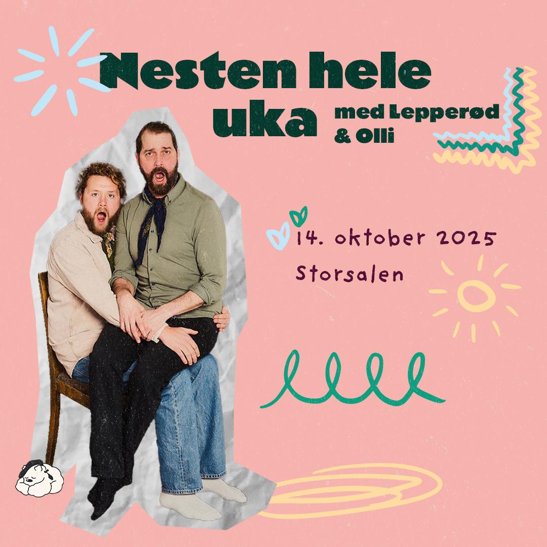 Nesten hele uka" kommer til scenen for aller første gang – under UKA i Trondheim! Martin Lepperød og Olli Wermskog står bak Norges en av landets mest populære podcaster akkurat nå – Nesten hele uka – som troner i toppen av Podtoppen og har fått hele landet til å le seg gjennom hverdagen. Nå tas suksessformatet til et helt nytt nivå: For aller første gang kan publikum oppleve duoens spontane humor, skråblikk og overraskelser i live-format – med alt det innebærer av galskap, spalter og uforutsigbar stemning. Premieren skjer eksklusivt under UKA i Trondheim – en av Norges mest legendariske studentfestivaler. Dette er en unik mulighet til å være med på en kveld som garantert vil gå inn i podcastens (og UKAs) historie. Publikum får oppleve Nesten hele uka slik de aldri har hørt det før – live, ufiltrert og med all den energien Martin og Olli er kjent for.