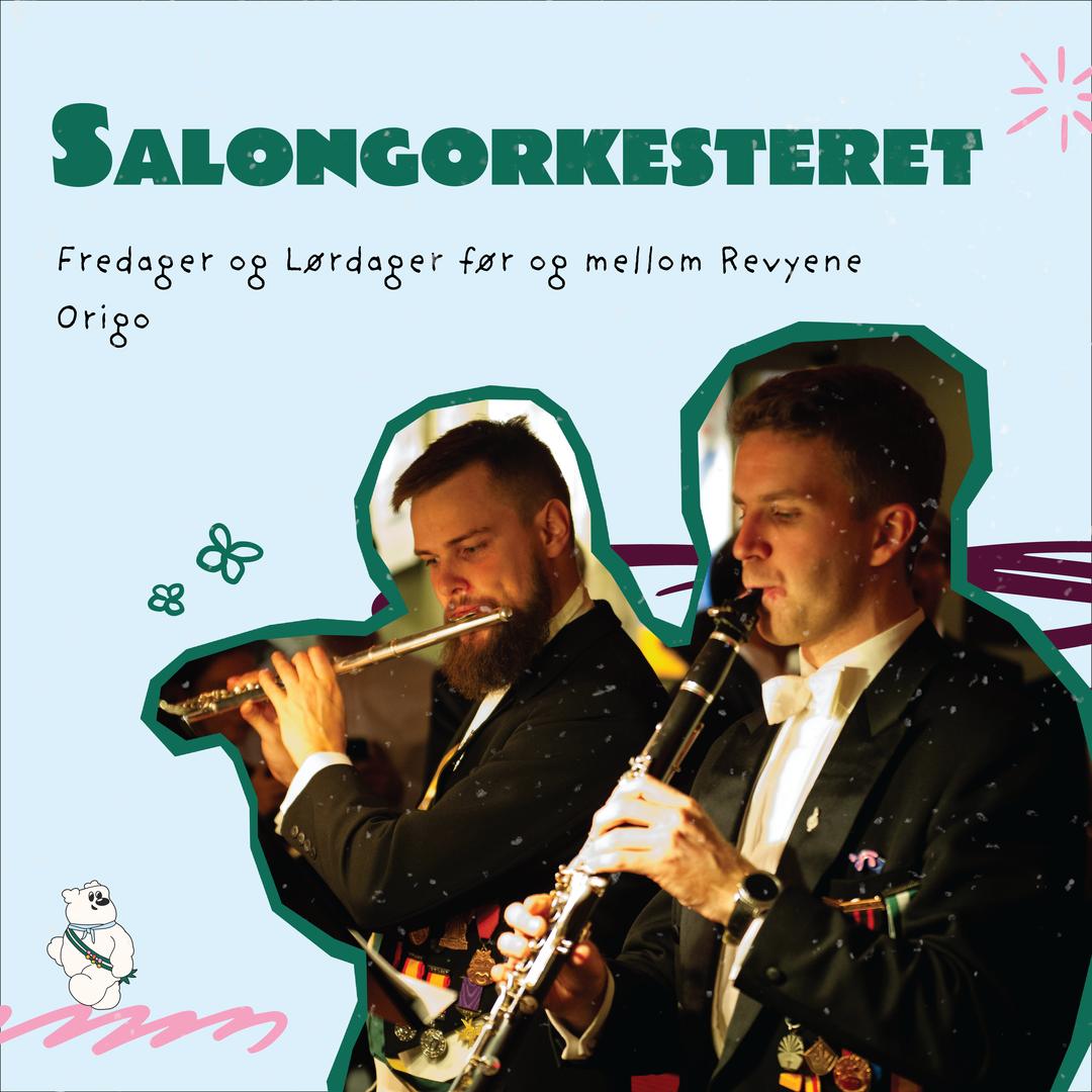 Før og mellom revyforestillingene på fredager og lørdager kan du ta turen innom Origo og oppleve husets minste, men uten tvil mest sofistikerte ensemble, salongorkesteret!