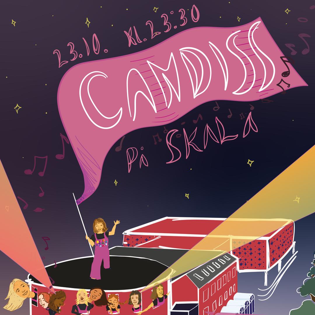 Ikledd sine særegne rosa snekkerbukser har Candiss sunget vakre harmonier siden 1982. De reiser rundt på oppdrag både i Norge og utlandet. Gjennom årene har de vært innom et bredt spekter av ulike sjangere, alt fra joik til pønk og pop. I dag består koret av 20 jenter som gleder seg til å innta Skala 23. oktober kl 23.00.